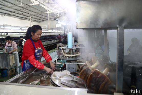 3月17日,位于山西省晉城市陽城縣寺頭鄉(xiāng)黍地村的山西禹珈豪絲業(yè)股份有限公司繅絲車間工人在忙碌。近年來,被譽(yù)為“華北蠶桑第一縣”的陽城縣,依托當(dāng)?shù)厣鷳B(tài)資源優(yōu)勢(shì),采用“龍頭企業(yè)+基地+合作社+農(nóng)戶”模式,大力發(fā)展特色蠶桑產(chǎn)業(yè),著力打造陽城蠶繭優(yōu)勢(shì)品牌,為推進(jìn)鄉(xiāng)村振興貢獻(xiàn)力量。目前,全縣桑園面積3.7萬畝,全縣養(yǎng)蠶戶6473戶,戶均收入超萬元。全縣實(shí)現(xiàn)年蠶桑綜合產(chǎn)值5.12億元,養(yǎng)蠶張數(shù)、蠶繭產(chǎn)量分別占全市的98.06%、全省的94.5%。
