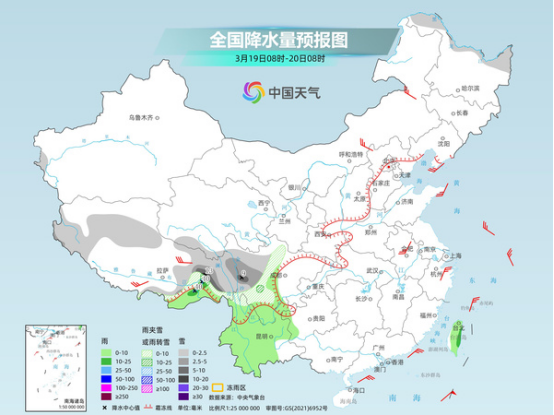 我國大部晴朗升溫、降水稀少,但在西南地區(qū)雨雪天氣比較頻繁。未來三天,西藏東部、川西高原等地部分地區(qū)有小到中雪,局地大到暴雪。同時,內蒙古東北部、黑龍江北部也將有小到中雨雪天氣。