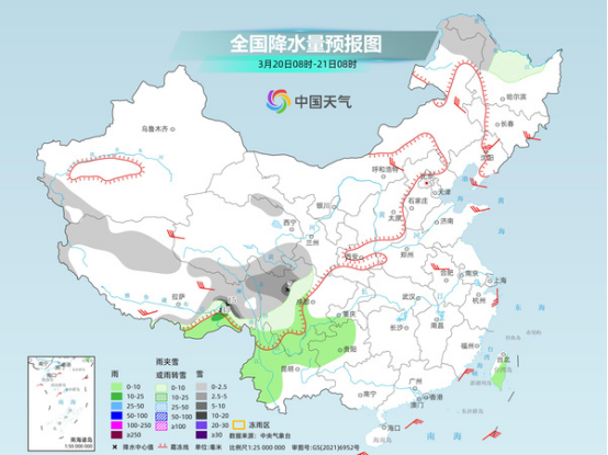 后天,內蒙古東北部、黑龍江中北部、西藏西北部和東部、青海南部、川西高原等地部分地區(qū)有小到中雪或雨夾雪,其中,西藏東部、川西高原北部等地部分地區(qū)有大到暴雪。黑龍江東南部、西藏東南部、四川盆地南部、貴州北部、云南中西部和北部等地部分地區(qū)有小到中雨,其中,西藏東南部等地部分地區(qū)有大雨。