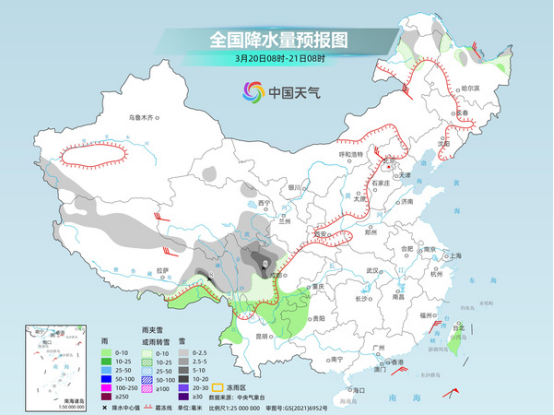 今天(3月20日)進(jìn)入春分節(jié)氣,一年中升溫最快的時(shí)節(jié)到來,應(yīng)景的是,目前正在經(jīng)歷一輪持續(xù)時(shí)間長(zhǎng)、升溫幅度大的回暖過程,未來六天,最高氣溫20℃線將逐漸北抬至吉林中南部一帶,華北及其以南最高氣溫將有大片25℃以上區(qū)域,多地將體驗(yàn)常年5月中下旬的氣溫。升溫的同時(shí),中東部大部地區(qū)降水稀少,雨雪主要集中在西南地區(qū),云南、西藏等部分地區(qū)需警惕持續(xù)降雨可能引發(fā)的次生災(zāi)害。