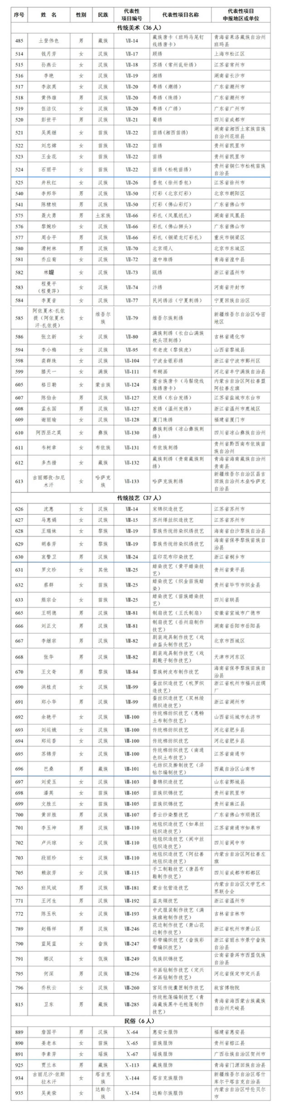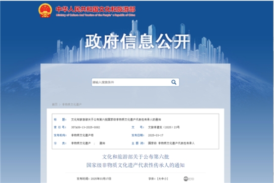 據了解,近年來,各地高度重視非物質文化遺產代表性傳承人隊伍建設,涌現出一大批德藝雙馨、技藝精湛,在非物質文化遺產保護傳承中發(fā)揮重要作用的典型代表。為加強非物質文化遺產傳承人隊伍建設,進一步提升非物質文化遺產系統性保護能力水平,保護和傳承好非物質文化遺產,文化和旅游部組織開展第六批國家級非物質文化遺產代表性傳承人認定工作。經推薦申報、材料復核、專家初評、社會公示、評審委員會審議等程序,確定了第六批國家級非物質文化遺產代表性傳承人名單。