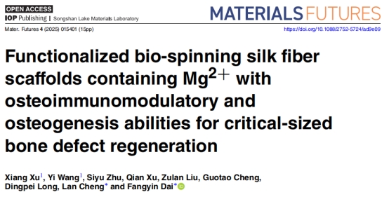 絲素蛋白作為支架材料廣泛應(yīng)用于骨修復(fù),然而,其復(fù)雜的制造工藝限制了其更廣泛的臨床應(yīng)用。資源昆蟲高效養(yǎng)殖與利用全國(guó)重點(diǎn)實(shí)驗(yàn)室,西南大學(xué)桑蠶紡織和生物質(zhì)學(xué)院代方銀教授團(tuán)隊(duì)首次利用具有連續(xù)絲纖維、多孔層次結(jié)構(gòu)和優(yōu)越力學(xué)性能特征的平板絲(FSC)制備生物支架。通過聚多巴胺(PDA)的粘附作用介導(dǎo)鎂離子(Mg2+)組裝到FSC支架上,得到的TH-PDA@Mg支架顯示出特殊的機(jī)械強(qiáng)度、優(yōu)越的表面特性和優(yōu)良的生物相容性,同時(shí)還展現(xiàn)出顯著的免疫調(diào)節(jié)和成骨再生能力,在臨床治療骨缺損中具有廣闊前景。