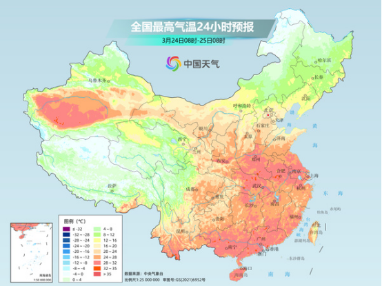 本周,我國大部地區(qū)將上演“氣溫過山車”,冷暖反差明顯。預計未來三天(3月24日至26日),我國大部仍維持大回暖模式,明后天黃河以南地區(qū)將達到暖熱巔峰,多地氣溫可超30℃,江南、華南局地或現(xiàn)高溫天氣。不過寒潮已經(jīng)在路上了,25日前后它將率先影響新疆,27至28日中東部也將迎來氣溫“大跳水”,北方多地最高氣溫重返個位數(shù),冷暖反轉(zhuǎn),公眾需及時關注氣溫變化,添衣防感冒。
