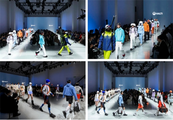 在馬艷麗充滿感染力的致辭之后,迸發(fā)青春動能的模特們魚貫而出。來自芬蘭的專業(yè)滑雪裝備品牌HALTI攜「躍雪風尚」系列,開啟了本季中國國際時裝周首秀。北歐冰雪基因注入東方留白美學,呈現(xiàn)一場關(guān)于突破與超「躍」的冰雪風尚敘事。