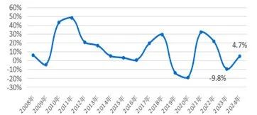 圖4 2008~2024年化纖行業(yè)固定資產投資增速變化