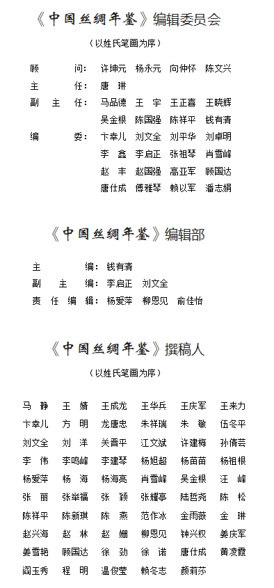 《中國絲綢年鑒》(2023年版)正式出版發(fā)行?!吨袊z綢年鑒》是經(jīng)國家新聞出版署批準(zhǔn),由國家繭絲綢協(xié)調(diào)辦公室支持,中國絲綢協(xié)會(huì)主辦,浙江理工大學(xué)聯(lián)辦,《中國絲綢年鑒》編輯部編輯出版的行業(yè)性、資料性實(shí)用工具書刊,同時(shí)具有國家繭絲綢行業(yè)公報(bào)和繭絲綢行業(yè)編年史冊(cè)的性質(zhì)?!吨袊z綢年鑒》的宗旨是全面、系統(tǒng)、準(zhǔn)確地記錄和反映中國繭絲綢行業(yè)的發(fā)展歷程,為中國絲綢行業(yè)的改革、開放和現(xiàn)代化建設(shè)服務(wù)。