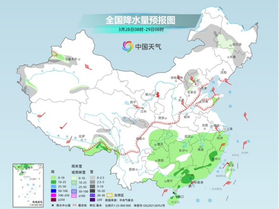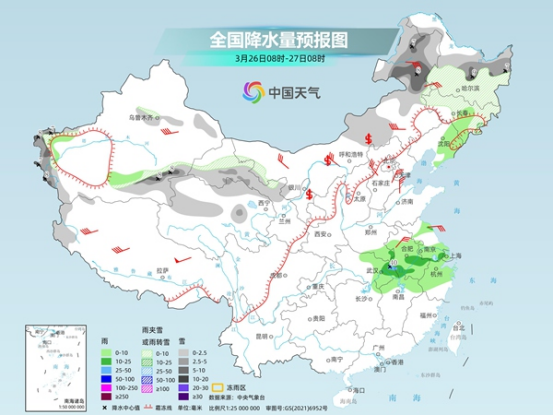 今明天,受冷暖空氣交匯影響,南方降雨發(fā)展增多,部分地區(qū)還可能激發(fā)出強(qiáng)對(duì)流天氣。其中今天,新疆南疆盆地東南部和西部山區(qū)、甘肅中北部、青海北部、內(nèi)蒙古東部、東北地區(qū)中北部等地部分地區(qū)有小到中雪或雨夾雪,其中,新疆南疆盆地東南部和西部山區(qū)、內(nèi)蒙古東北部、黑龍江中部等地部分地區(qū)有大雪。新疆南疆盆地西部和東南部、吉林中部、遼寧中東部、河南南部、湖北東部、江西北部、安徽大部、浙江中北部、江蘇南部和西北部等地部分地區(qū)有小到中雨,其中,安徽西南部、湖北東部等地局地有大雨。