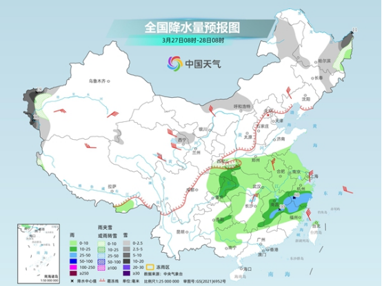 今天(3月27日)至30日,寒潮將繼續(xù)影響我國。今天起,中東部開啟氣溫大跳水,其中南方多地降溫前后冷暖差異巨大,像是杭州、武漢,昨天最高氣溫高達(dá)34℃,今天起氣溫就將開始“滑坡“,周末前后或再次感受冬日寒意,公眾需及時(shí)增衣保暖。此外,今天至30日南方將持續(xù)有大范圍陰雨,華北、東北部分地區(qū)今明天有降雪,公眾請(qǐng)注意防滑。