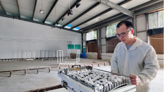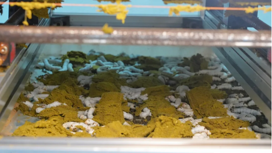 “這是我們智能化工廠里養(yǎng)出來的飼料蠶繭,你看它粒粒飽滿,繭色潔白,繭子很厚實(shí),質(zhì)量非常好?!被丶夹g(shù)員陳德忠拿起一粒蠶繭,自豪地說?!拔覀儸F(xiàn)在采用機(jī)械化喂蠶,相比原來人工喂蠶,效率提高了6倍。”