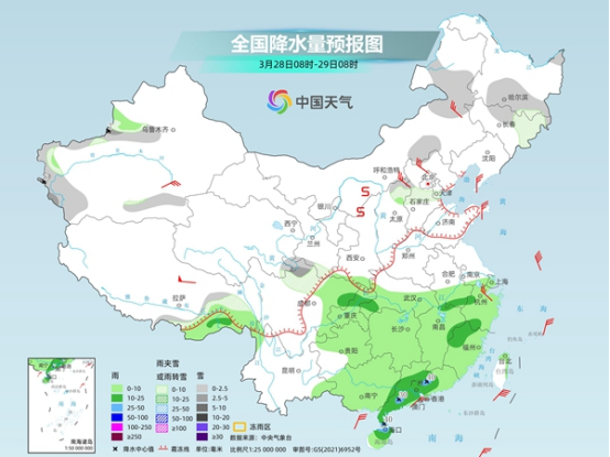 今明兩天(3月28日至29日),寒潮仍會繼續(xù)影響我國。到本周末,貴州到江南多地最高氣溫僅有個位數,并且南方多地伴隨降溫還有陰雨,體感溫度會更低,濕冷感十足,提醒公眾及時添衣,注意防雨除濕。