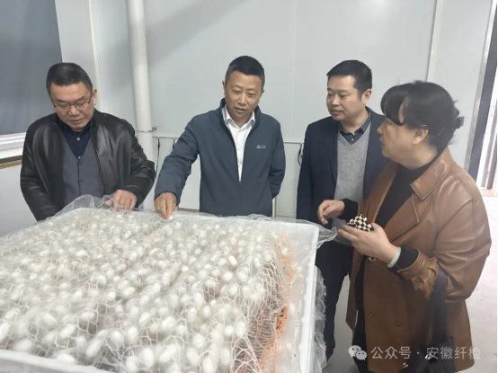 為全面掌握安徽省桑蠶產(chǎn)業(yè)轉(zhuǎn)型升級(jí)情況,推動(dòng)產(chǎn)業(yè)高質(zhì)量發(fā)展,3月28日,安徽省纖檢局一行赴潛山市槎水鎮(zhèn)中畈村桑蠶產(chǎn)業(yè)園開(kāi)展調(diào)研,并就桑蠶產(chǎn)業(yè)的創(chuàng)新發(fā)展模式與企業(yè)進(jìn)行深入交流。
