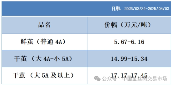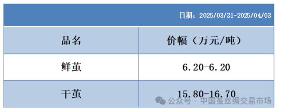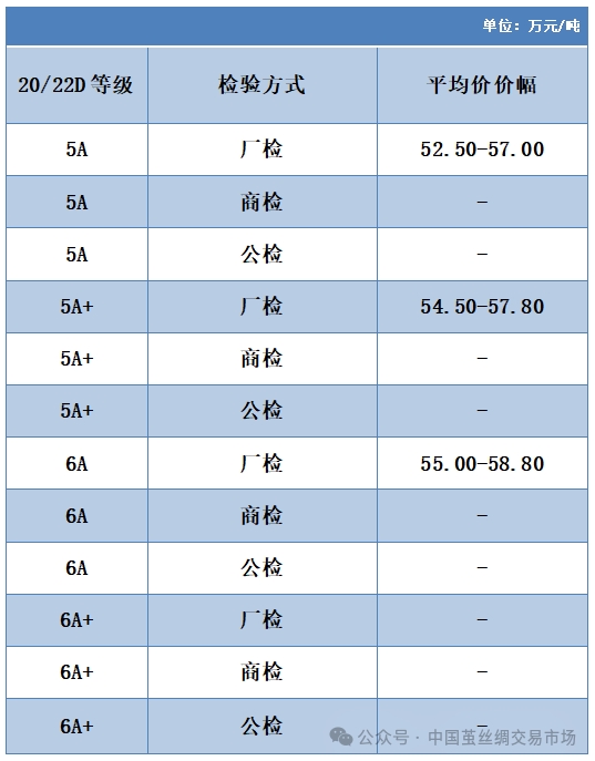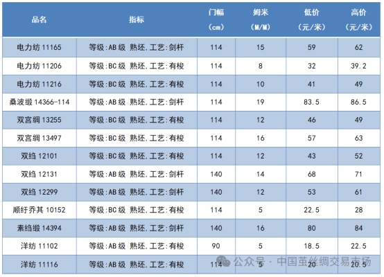 本周高品位生絲協(xié)作單位成交價(jià)格區(qū)間