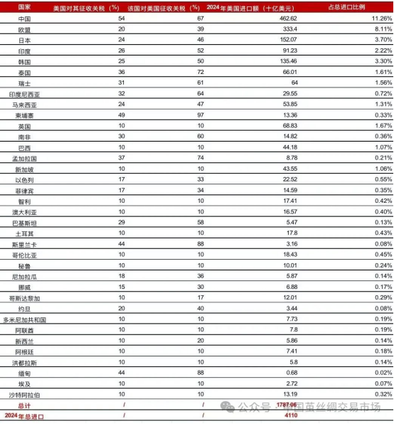 宏觀面上,當(dāng)?shù)貢r(shí)間4月2日,特朗普正式宣布對(duì)全球加征對(duì)等關(guān)稅。對(duì)全球進(jìn)口商品加征10%的基準(zhǔn)關(guān)稅,于4月5日生效;并對(duì)部分經(jīng)濟(jì)體征收更高的稅率,暫定4月9日生效。其中,對(duì)中國、歐盟、日本、越南、印度分別加征34%、20%、24%、46%、26%。