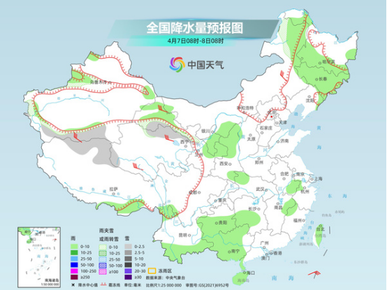 明天,新疆北部、內(nèi)蒙古中東部、西藏北部、青海南部等地有小到中雪或雨夾雪,內(nèi)蒙古中部、陜西北部、山西、河北北部和南部、山東、貴州東部和南部、湖南中南部、江西中部、廣西中北部、海南島、臺灣島等地有小到中雨。