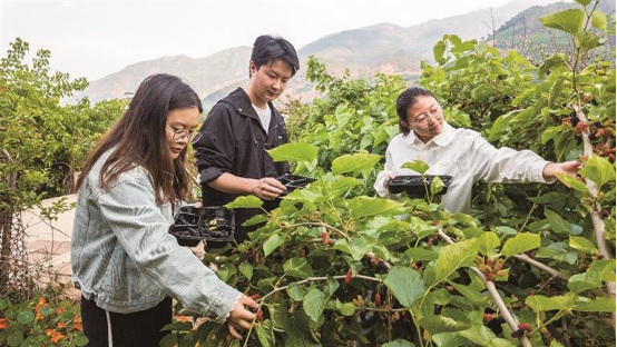 “為了讓游客有一個好的采摘體驗,我們一共種植了9個桑椹品種,游客可以品嘗到各種味道的桑椹?!本G苑農(nóng)業(yè)科技有限公司負責人李平霞介紹,2019年該公司開始打造桑椹采摘體驗園,2021年4月正式對外營業(yè),并成為市級研學旅游基地。在這里,不僅可以體驗采摘的樂趣,還能了解蠶桑產(chǎn)業(yè)發(fā)展歷史,深入了解桑椹現(xiàn)代加工技術(shù),吸引了不少像謝明娟一樣的市民游客和市內(nèi)外學生來此游玩研學。