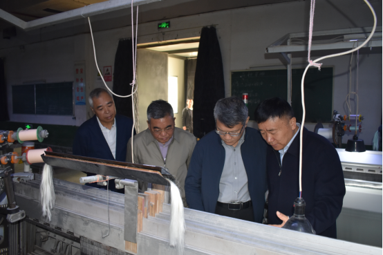 彭健銘副主席一行首先參觀了京九絲綢的生產(chǎn)車間,詳細(xì)了解了從栽桑養(yǎng)蠶到蠶繭收烘、繅絲、織綢,再到終端產(chǎn)品華詩(shī)雅蒂的全產(chǎn)業(yè)鏈生產(chǎn)流程。在繅絲車間,車間員工向彭健銘副主席展示了機(jī)器的運(yùn)行效率和技術(shù)優(yōu)勢(shì),其不僅大幅提升了生產(chǎn)效率,還保證了生絲質(zhì)量的穩(wěn)定性。彭健銘副主席對(duì)此表示高度認(rèn)可,他指出,科技創(chuàng)新是推動(dòng)絲綢產(chǎn)業(yè)高質(zhì)量發(fā)展的關(guān)鍵,企業(yè)要持續(xù)加大在技術(shù)研發(fā)和設(shè)備更新上的投入。