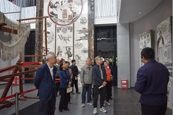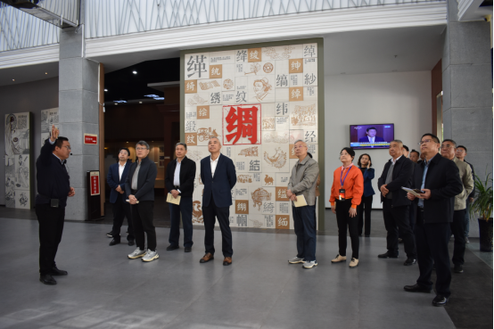隨后,彭健銘副主席一行來(lái)到華夏絲綢博物館,這里是展示絲綢歷史,弘揚(yáng)絲綢文化的場(chǎng)所。彭健銘副主席表示:踏入華夏絲綢博物館,就像翻開一部厚重的東方史書。穿梭在展區(qū)間,精美的絲綢織物與詳盡的史料,訴說(shuō)著千年絲路的輝煌。從古老織機(jī)到現(xiàn)代工藝,每一步跨越都見證著人類智慧。通過(guò)這次參觀,觸摸到了歷史脈搏,也領(lǐng)悟到了傳統(tǒng)技藝傳承的意義與價(jià)值。彭健銘副主席仔細(xì)詢問(wèn)了華詩(shī)雅蒂產(chǎn)品的市場(chǎng)定位、銷售渠道以及品牌建設(shè)情況,鼓勵(lì)企業(yè)要進(jìn)一步強(qiáng)化品牌意識(shí),拓展市場(chǎng)空間,提升產(chǎn)品附加值。