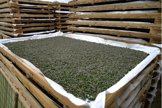 德??h地處桂西南山區(qū),氣候溫潤,桑樹種植歷史悠久,但傳統(tǒng)分散養(yǎng)殖模式長期存在成活率低、品質不穩(wěn)定等問題。星聯(lián)蠶業(yè)創(chuàng)新推行的“小蠶共育”技術,通過統(tǒng)一消毒、統(tǒng)一喂養(yǎng)、統(tǒng)一管理的“三統(tǒng)一”模式,建立起科學化、規(guī)范化的養(yǎng)殖體系。共育中心配備恒溫恒濕設備、自動+人工的消毒系統(tǒng),并聘請專業(yè)技術人員全程指導,將蠶苗養(yǎng)殖劃分為三個階段,每階段精準控制溫濕度與喂養(yǎng)頻次,僅15天即可完成小蠶培育周期。目前,基地年育苗能力達900張,除滿足本地需求外,還輻射靖西、天等等周邊縣市,據(jù)統(tǒng)計,年均共育苗7000余張,實現(xiàn)產(chǎn)值約140萬元。