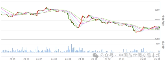 3 月初,各地蠶種陸續(xù)出庫,并于 3 月中旬開始大規(guī)模收蟻養(yǎng)蠶,整體養(yǎng)蠶時間相較于去年推遲約 10 天,與前年相比,也推遲了 3 天左右,這導(dǎo)致廣西 2025 年首批春繭的上市時間晚于去年同期。