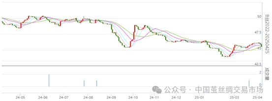 今日(周二)生絲盤面各遠近合約漲跌不一。主力 250925 合約在 45 萬價位附近有所止跌展開反彈,最終以小陽線報收。而其他合約較 250925 合約價格更高,在今日交易中,有不同程度下挫。使得盤面整體多空博弈較為明顯。