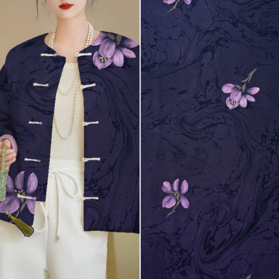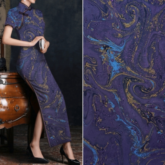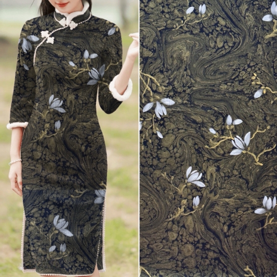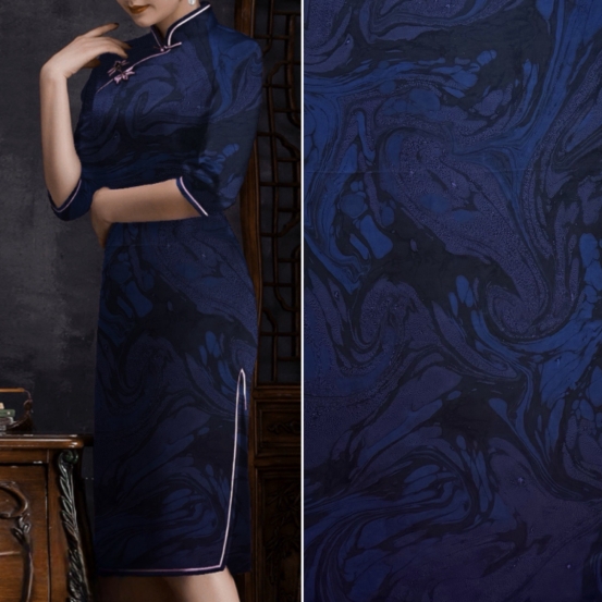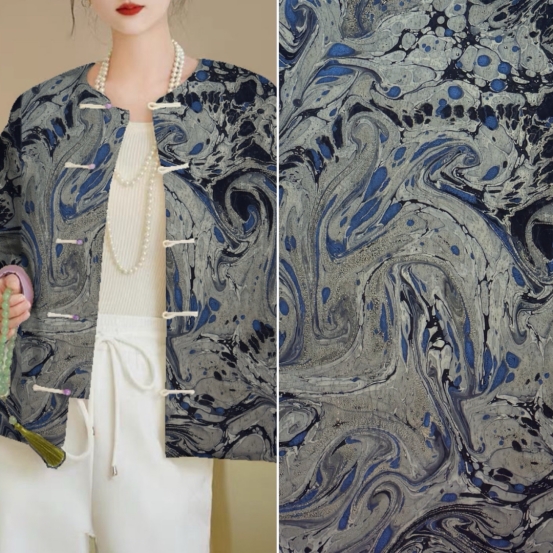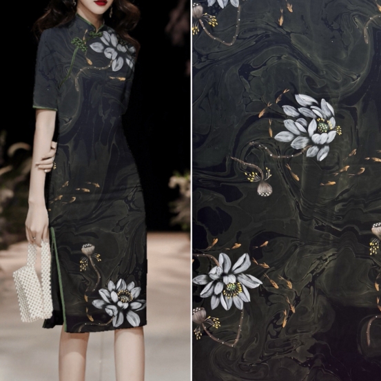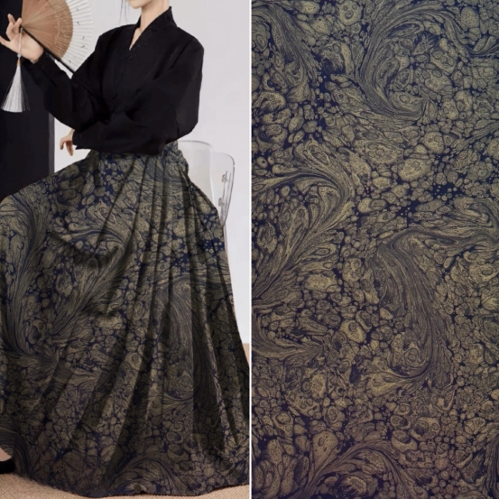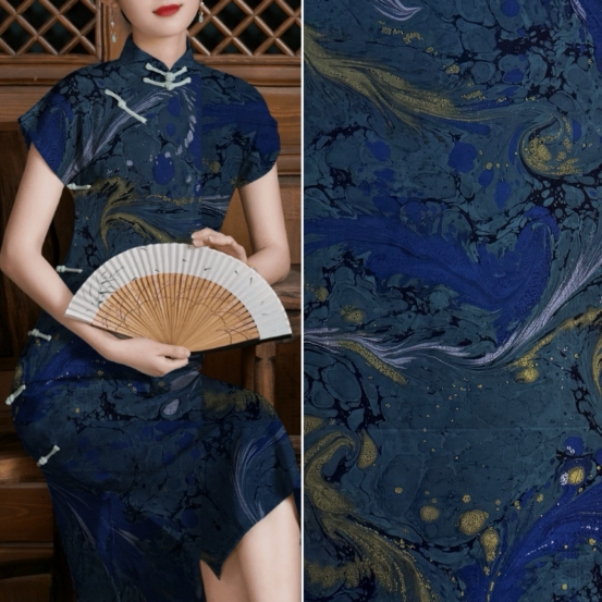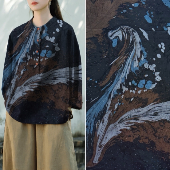 如今,我們將這古老的墨池技藝創(chuàng)新性地融入同為非物質(zhì)文化遺產(chǎn)的香云紗面料制作中。當(dāng)兩種非遺文化激情碰撞,誕生的不僅是一款面料,更是藝術(shù)領(lǐng)域的巔峰之作。墨池古法采用天然礦物質(zhì)染料與植物染料,在水的調(diào)和下,與香云紗完美相融,繪就出一幅幅仿若 “天人合一” 的藝術(shù)畫作面料,每一寸都流淌著自然與傳統(tǒng)交織的魅力。