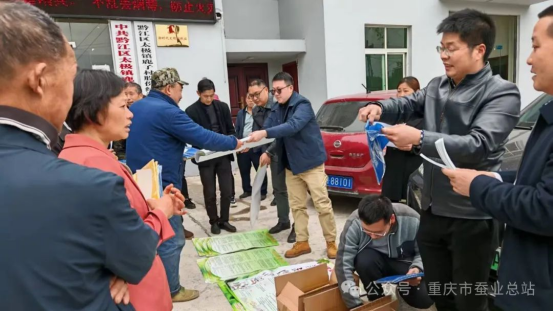 2025年4月3日,正值春蠶生產(chǎn)序幕陸續(xù)展開之際,市人社局第六批專家服務(wù)團郭明武研究員團隊成員重慶市蠶業(yè)總站副站長余華獻高級農(nóng)藝師、胡文龍正高級農(nóng)藝師、郭銘建高級農(nóng)藝師、傅宇航技術(shù)員,黔江區(qū)蠶業(yè)總站曾玉龍工程師,黔江區(qū)太極鎮(zhèn)蠶繭站站長王于春等一行6人赴黔江區(qū)太極鎮(zhèn)鹿子村開展蠶桑技術(shù)服務(wù)。
