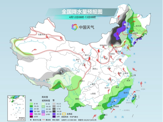 后天,內(nèi)蒙古東部、黑龍江西北部、吉林中東部、遼寧東部、河北北部、青海南部、西藏東部和南部、川西高原北部等地部分地區(qū)有小到中雪或雨夾雪,其中,內(nèi)蒙古東部、吉林東部、遼寧東北部、河北西北部、青海南部等地部分地區(qū)有大到暴雪,局地大暴雪。黑龍江西部、吉林西部、遼寧北部、廣東大部、福建大部、浙江南部等地部分地區(qū)有中到大雨。