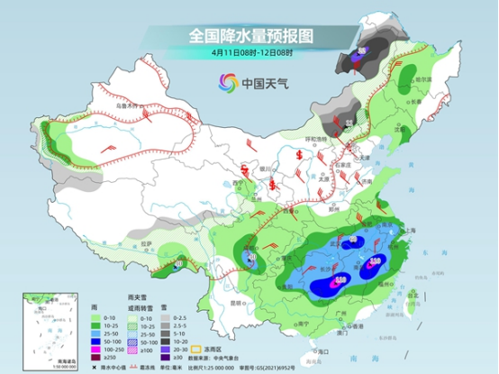明天(4月11日)起,較強冷空氣將影響中東部大部地區(qū),氣溫下降6℃至10℃,部分地區(qū)降幅可達(dá)12℃至16℃。降溫的同時,華北等地大風(fēng)顯著,陣風(fēng)8至10級,局地或可達(dá)11級以上。另外,內(nèi)蒙古中東部、東北地區(qū)部分地區(qū)有中到大雪或雨夾雪,局地暴雪或大暴雪,南方降雨增強,將迎今年來最大范圍強對流天氣。
