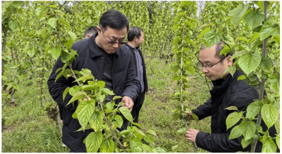 3月30日至31日,重慶市蠶科院副院長蔣定超帶隊赴忠縣官壩鎮(zhèn)固國村開展果桑菌核病專項防治技術(shù)指導與服務工作。固國村現(xiàn)有果桑200多畝,正值菌核病防治關(guān)鍵時期,市蠶科院專家技術(shù)團隊綜合分析了當前桑樹菌核病防治現(xiàn)狀,針對當?shù)貧夂虻葘嶋H情況,手把手進行技術(shù)指導服務,將菌核病防治技術(shù)要點送到田間地頭,送到桑農(nóng)心中。