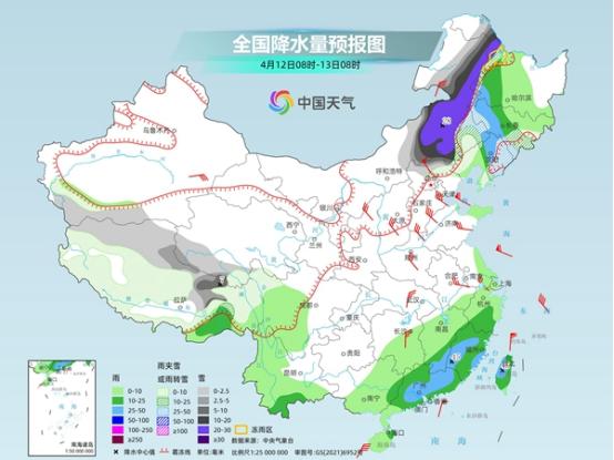 中國天氣網(wǎng)提示,北方這輪雨雪過程中,內(nèi)蒙古中東部、黑龍江西北部、吉林東部、遼寧東北部降雪強(qiáng)度大,不利交通出行和農(nóng)牧業(yè)生產(chǎn),公眾需做好溫室大棚、簡(jiǎn)易搭建物、牲畜棚圈加固工作。11日午后至12日傍晚,江淮南部、江南、華南、西南地區(qū)東部將有大范圍強(qiáng)對(duì)流天氣,局地有12級(jí)以上雷暴大風(fēng)或冰雹,建議公眾盡量減少外出,注意安全。