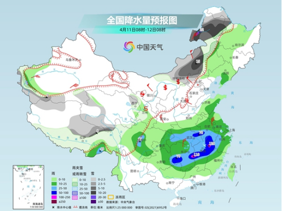 隨著較強(qiáng)冷空氣登場(chǎng),今起三天,內(nèi)蒙古東部和東北地區(qū)等地將遭遇強(qiáng)雨雪,最強(qiáng)降雪時(shí)段將出現(xiàn)在11日夜間至12日夜間。同時(shí),今明兩天南方地區(qū)或現(xiàn)今年來最強(qiáng)風(fēng)雹天氣,湖北、湖南、安徽、江西、浙江、福建、廣西等地部分地區(qū)今天需防范強(qiáng)降雨。