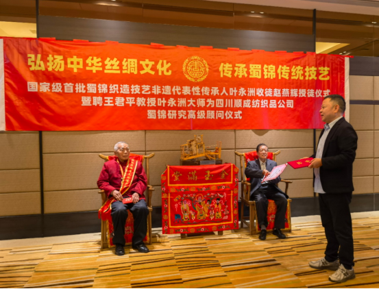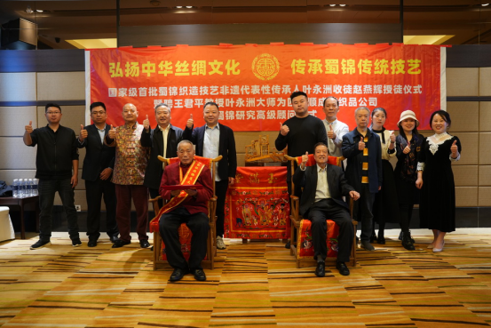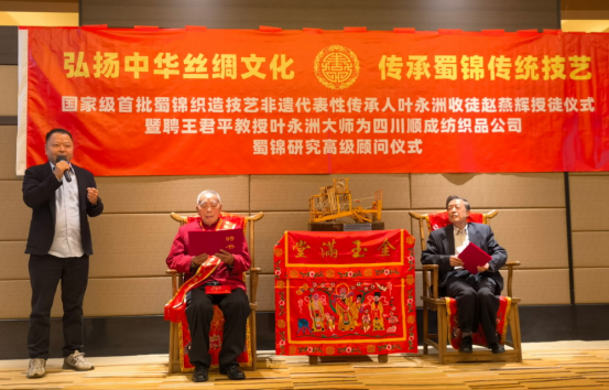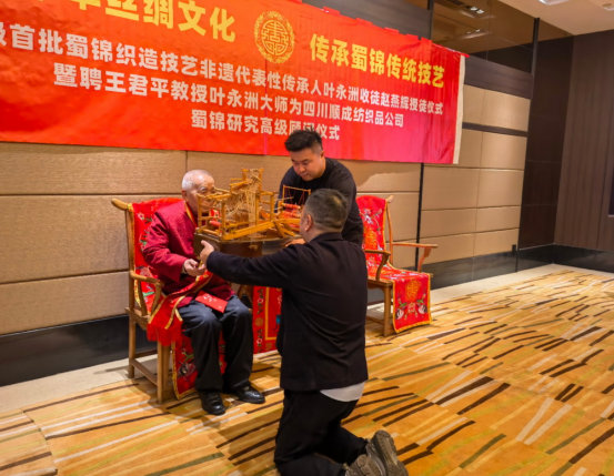 同時,四川順成紡織品有限公司在拜師儀式上正式聘任葉永洲大師、王君平教授為高級顧問。王君平教授強調(diào),蜀錦作為中國名錦之首,需在保護中探索產(chǎn)業(yè)化路徑。順成公司憑借多年行業(yè)積淀,已實現(xiàn)桑蠶養(yǎng)殖、織造、文產(chǎn)全鏈條布局,未來將通過蜀錦蜀繪,加上蜀繡與蜀纈組合成為川蜀絲綢的“四朵金花”布局文化矩陣,打造川蜀絲綢新名片。活動不僅為非遺傳承注入新生力量,也為傳統(tǒng)工藝與現(xiàn)代經(jīng)濟融合提供范本。