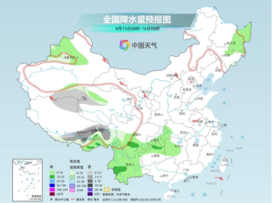 中央氣象臺(tái)預(yù)計(jì),今天,黑龍江東南部、吉林東部、新疆沿天山地區(qū)和南疆西部山區(qū)、西藏北部、西北地區(qū)中部、川西高原北部等地部分地區(qū)有小雪或雨夾雪,其中,西藏北部、青海東部和南部、川西高原北部等地部分地區(qū)有中到大雪,西藏東北部、青海南部等地局地暴雪。內(nèi)蒙古東南部、東北地區(qū)東部和西部、新疆北疆北部和伊犁河谷、西藏東部、西南地區(qū)北部和南部等地部分地區(qū)有小雨,其中,西藏東南部、川西高原、云南西南部等地部分地區(qū)有中雨。