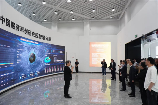會(huì)議當(dāng)天,在中國(guó)服裝協(xié)會(huì)非專職副秘書(shū)長(zhǎng)、中國(guó)服裝科創(chuàng)研究院副院長(zhǎng)劉正安的帶領(lǐng)下,與會(huì)嘉賓參觀了中國(guó)服裝科創(chuàng)研究院,通過(guò)展廳講解、場(chǎng)景演示,展示了中國(guó)服裝科創(chuàng)研究院在智能制造、數(shù)字化轉(zhuǎn)型等關(guān)鍵領(lǐng)域所取得的成果。