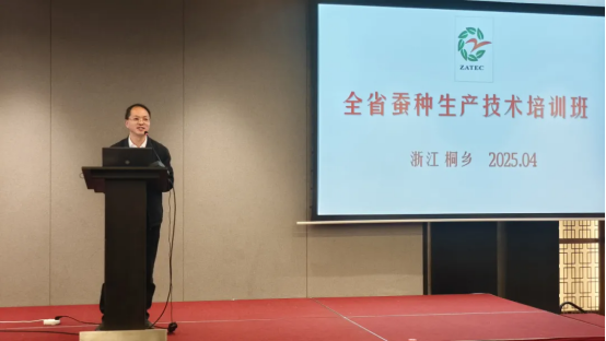 為推進(jìn)蠶桑產(chǎn)業(yè)技術(shù)創(chuàng)新與標(biāo)準(zhǔn)化生產(chǎn),提升浙江省蠶種生產(chǎn)核心競(jìng)爭(zhēng)力,4月15日,由浙江省農(nóng)業(yè)技術(shù)推廣中心主辦的全省蠶種生產(chǎn)技術(shù)培訓(xùn)班在桐鄉(xiāng)召開(kāi),來(lái)自全省各級(jí)蠶桑技術(shù)推廣部門、蠶種生產(chǎn)單位及相關(guān)科研院所的70余名代表參會(huì)。省農(nóng)技推廣中心副主任陳葉平、農(nóng)業(yè)農(nóng)村部蠶桑產(chǎn)業(yè)產(chǎn)品質(zhì)量檢驗(yàn)測(cè)試中心主任陳濤、省農(nóng)科院蠶茶所所長(zhǎng)王永強(qiáng)、浙江大學(xué)動(dòng)科院副院長(zhǎng)楊明英、桐鄉(xiāng)農(nóng)科所副所長(zhǎng)陳軼等出席培訓(xùn)會(huì)。