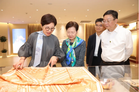 林鄭月娥表示,自己一直對絲綢情有獨鐘,并對萬事利品牌印象深刻。2017年8月,她曾以香港特區(qū)行政長官身份到訪萬事利,充分肯定企業(yè)在絲綢非遺傳承與文化創(chuàng)新方面的貢獻。此次再訪,她欣喜地看到萬事利在數(shù)字化轉型和國際化發(fā)展上取得的新成就,認為企業(yè)發(fā)展經(jīng)驗值得借鑒。