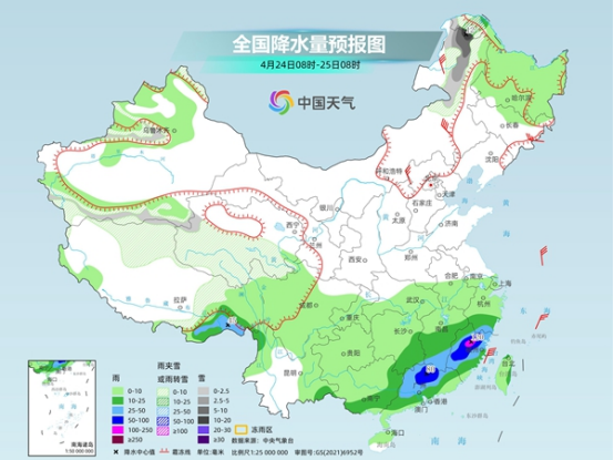 今起(4月24日)至周末,南方將持續(xù)多雨模式,華南部分地區(qū)累計降雨量較大,還伴有強對流天氣,需防范持續(xù)性降水可能引發(fā)的次生災害,建議公眾及時關(guān)注預報預警信息,注意出行安全。同時,北方有冷空氣“串場”,黃淮以北地區(qū)氣溫多起伏,需關(guān)注氣溫變化,及時增減衣物防感冒。