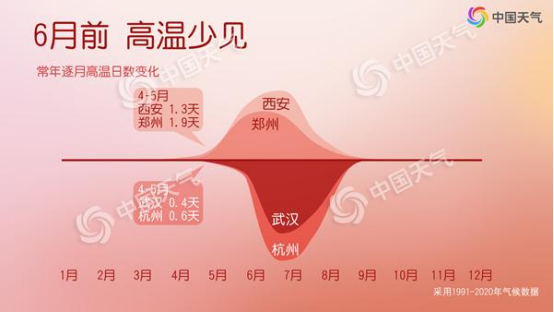 大城市中,西安、鄭州、武漢、杭州或現(xiàn)高溫,其中武漢、杭州、都將是今年首個高溫。高溫炎熱天氣上線,公眾請根據(jù)天氣變化適時調(diào)整著裝,注意做好防暑降溫工作。