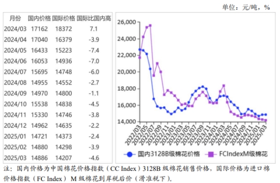 (七)預(yù)計(jì)近期國(guó)內(nèi)外棉價(jià)偏弱震蕩。國(guó)內(nèi)市場(chǎng):受美方對(duì)我國(guó)出口商品加征關(guān)稅影響,我國(guó)紡織品服裝出口趨緩,預(yù)計(jì)近期國(guó)內(nèi)棉價(jià)偏弱震蕩。國(guó)際市場(chǎng):北半球新棉進(jìn)入種植關(guān)鍵期,美國(guó)種植面積下降預(yù)期較強(qiáng),為棉價(jià)提供一定支撐。國(guó)際貿(mào)易摩擦升級(jí),引發(fā)經(jīng)濟(jì)衰退擔(dān)憂,經(jīng)濟(jì)合作與發(fā)展組織下調(diào)2025年全球經(jīng)濟(jì)增長(zhǎng)預(yù)期,全球棉花消費(fèi)需求可能進(jìn)一步萎縮,預(yù)計(jì)近期國(guó)際棉價(jià)偏弱震蕩。
