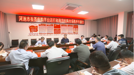 王軍指出,?桑蠶繭絲綢是河池市的支柱產(chǎn)業(yè)之一?,市委、市政府高度重視桑蠶繭絲綢產(chǎn)業(yè)鏈發(fā)展。有關(guān)部門單位要進一步研究完善蠶繭收購平臺整合效能,嚴(yán)格管控?fù)笇嵓?xì)節(jié)規(guī)范操作流程,理清行業(yè)管理原則,明確市場主體責(zé)任,推進稅收政策落實,多措并舉提高繭絲質(zhì)量,保障鮮繭收購企業(yè)和蠶農(nóng)合法利益,推動河池市蠶繭收購行業(yè)高質(zhì)量發(fā)展。