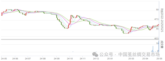 今日(周三)生絲盤面各遠(yuǎn)近合約價格繼續(xù)有所走高,多數(shù)合約今日有成交,持倉量繼續(xù)放大。