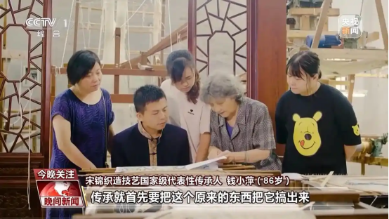 宋錦織造技藝國家級代表性傳承人 錢小萍:因為我們絲綢的理論,一直是人一代一代,就是工匠口口相傳的,傳承首先要把這個原來的東西搞出來,有了復制品,好多專家學者、好多工廠要研究,再去復原傳承,就可以有一個實物。