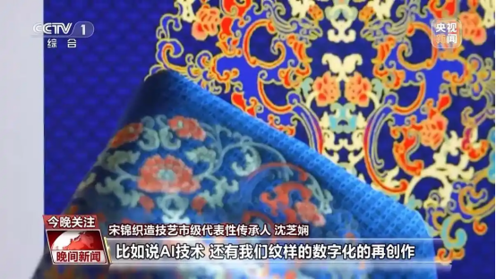 宋錦織造技藝市級代表性傳承人 沈芝嫻:在傳統(tǒng)技藝上,年輕人會有一些創(chuàng)新,有一些自己的想法,包括跟現(xiàn)代最新技藝的一些結(jié)合,比如說AI技術(shù),還有我們紋樣的數(shù)字化再創(chuàng)作。