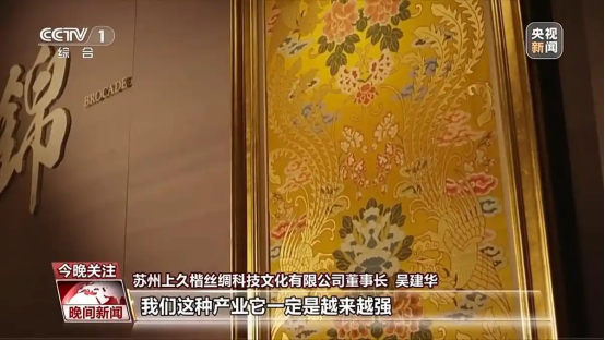 蘇州上久楷絲綢科技文化有限公司董事長 吳建華:它背后的文化的東西,才是真正打動人的。我們的文化自信越來越強,我們的產(chǎn)業(yè)一定是越來越強。