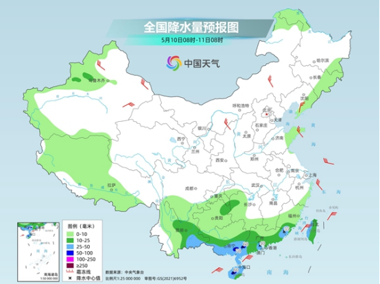 明天,華北大部、黃淮東部、江南南部、華南等地部分地區(qū)有中到大雨,其中,河北中部、北京西南部、廣西東北部、廣東西北部等地部分地區(qū)有暴雨。