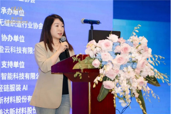 盈云學(xué)院優(yōu)秀針織設(shè)計(jì)師張玉容以《2026春夏無縫針織流行趨勢》為題,詳細(xì)就28針超細(xì)毛織智造的優(yōu)勢、材料和趨勢進(jìn)行了分享。她指出,28針超細(xì)毛織具有智造速度快、品類全、四季可穿等特性,會(huì)上,結(jié)合大量案例,還他就材料的創(chuàng)新應(yīng)用,如何織造立體、通透、拼接花型進(jìn)行了介紹,并就如何用AI軟件快速設(shè)計(jì)款式及色塊圖進(jìn)行了現(xiàn)場指導(dǎo)。