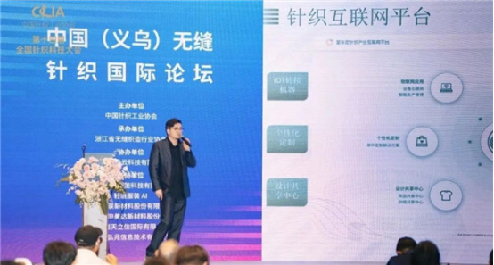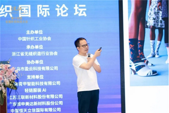 圣東尼(上海)針織機(jī)器有限公司應(yīng)用開發(fā)經(jīng)理陳冠宇以《無縫設(shè)備的發(fā)展趨勢暨針織產(chǎn)業(yè)互聯(lián)網(wǎng)平臺(tái)——無縫新勢力賦能產(chǎn)業(yè)鏈》為題,結(jié)合企業(yè)無縫機(jī)器及無縫產(chǎn)品進(jìn)行了分享。結(jié)合案例,他詳細(xì)就無縫設(shè)備對(duì)時(shí)尚休閑與功能運(yùn)動(dòng)產(chǎn)品、時(shí)尚新意與高性能運(yùn)動(dòng)的開發(fā)與設(shè)計(jì)進(jìn)行了講解?!笆|尼針織產(chǎn)業(yè)互聯(lián)網(wǎng)平臺(tái)”可通過電腦端或者手機(jī)微信公眾號(hào)操作,隨時(shí)獲取工廠生產(chǎn)等數(shù)據(jù),為客戶數(shù)字化和智能化提供全面支持。