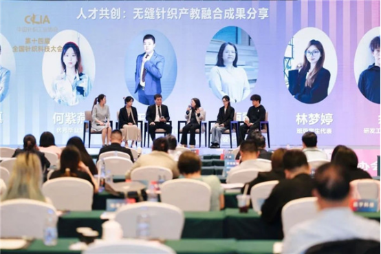 在人才共創(chuàng)上,會(huì)上開展了一場產(chǎn)教融合訪談活動(dòng)。以浙江省無縫織造行業(yè)協(xié)會(huì)會(huì)長單位天派針織與義烏工商職業(yè)技術(shù)學(xué)院首批產(chǎn)教融合為案例,師生代表及協(xié)會(huì)代表交流溝通了在特色學(xué)徒制、訂單班培養(yǎng)、實(shí)訓(xùn)基地共建等方面的成果豐碩,形成了“專業(yè)建在產(chǎn)業(yè)上,課堂設(shè)在崗位里”的“義烏范式”,為行業(yè)輸送了高素質(zhì)技術(shù)技能人才。