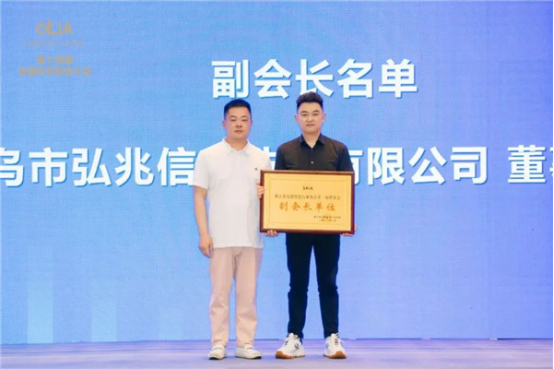 浙江省無縫織造行業(yè)協(xié)會(huì)會(huì)長王晉圍為新任副會(huì)長義烏市弘兆信息技術(shù)有限公司董事長陳衛(wèi)東授牌。