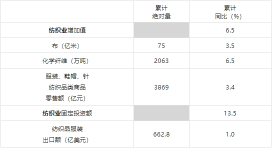 3月我國紡織行業(yè)增加值同比增長6.5%
